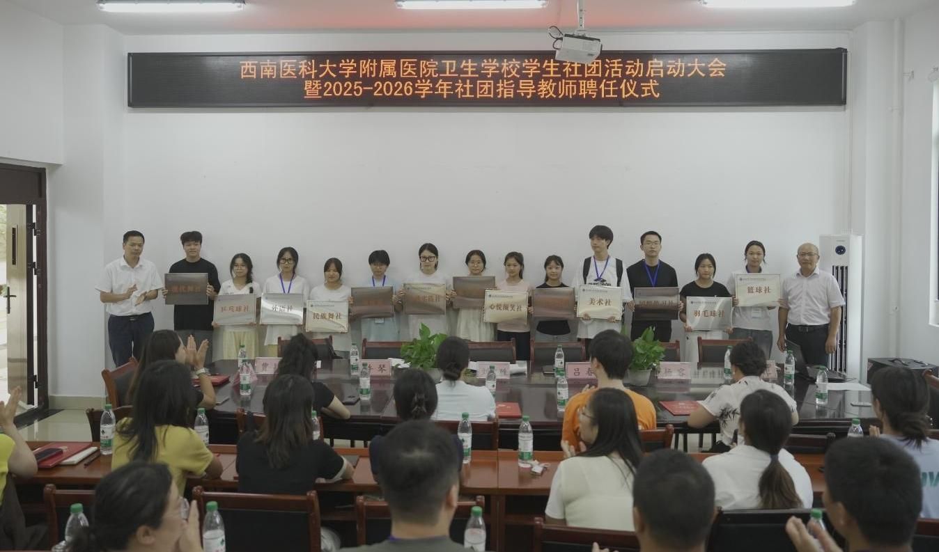 吕春宣读了《西南医科大学附属医院卫生学校关于聘任2025-2026学年学生社团指导教师的决定》,正式聘任谢琳等24名教师担任本学年社团指导教师,涵盖艺术修养、运动健康、技能实践、语言文化四大类共13个社团。