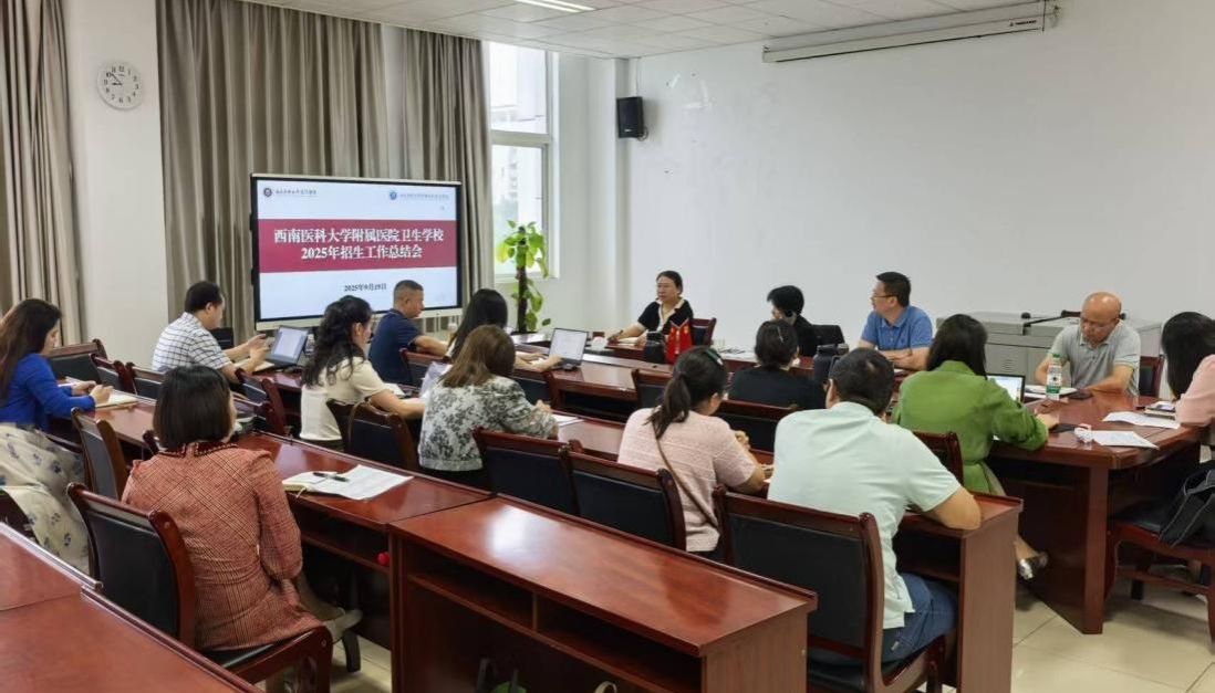 9月19日上午,西南医科大学附属医院卫生学校2025年招生工作总结会在城北校区海川楼4楼会议室召开。党委书记刘文胜主持,全体处科级干部、各招生工作组负责人参会。