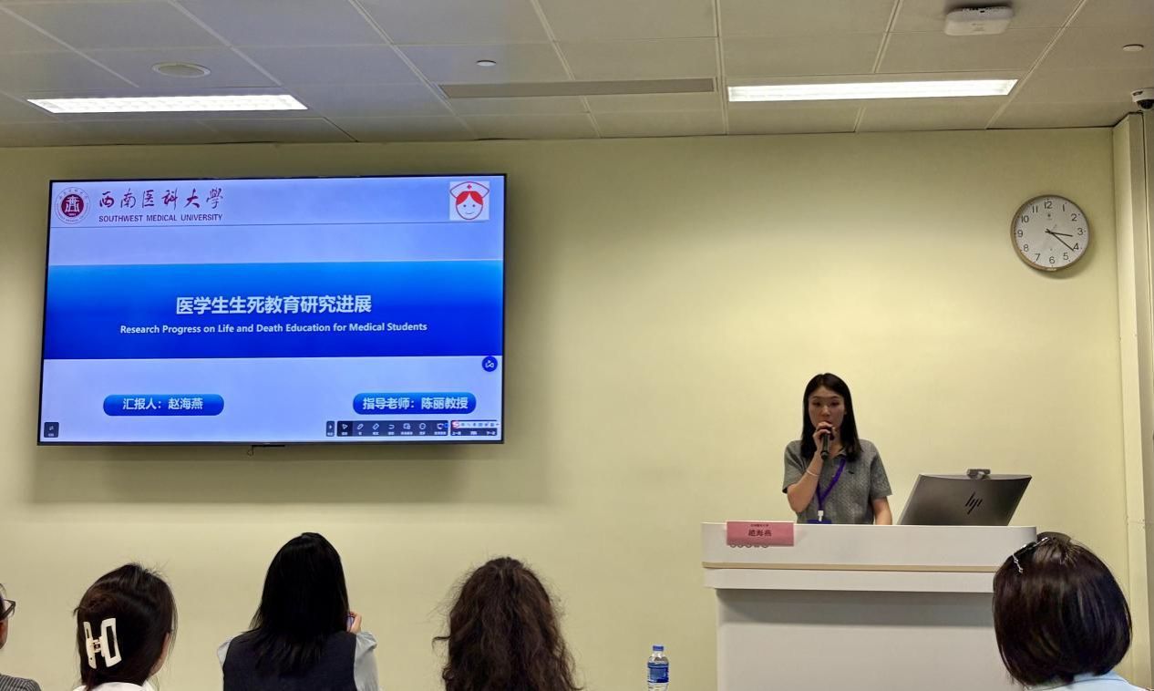 我院硕士研究生导师陈丽教授指导的两位2023级硕士研究生赵海燕、魏代理应邀参会。赵海燕同学以《医学生生死教育研究进展》为题进行大会发言,系统梳理了国内外医学生生死教育的研究进展与实践经验,在厘清国内发展现状与关键问题的基础上,提出了切实可行的本土化优化路径,为推进医学人文教育改革提供了重要的循证依据。其报告内容翔实、观点新颖,引发了与会学者的浓厚兴趣。在问答环节,她与西安交通大学王婧教授、华人生死学与生死教育学会雷爱民理事长等专家学者,围绕生死教育的研究特点、国内外实践差异等议题进行了深入交流,获得了宝贵的建设性意见。