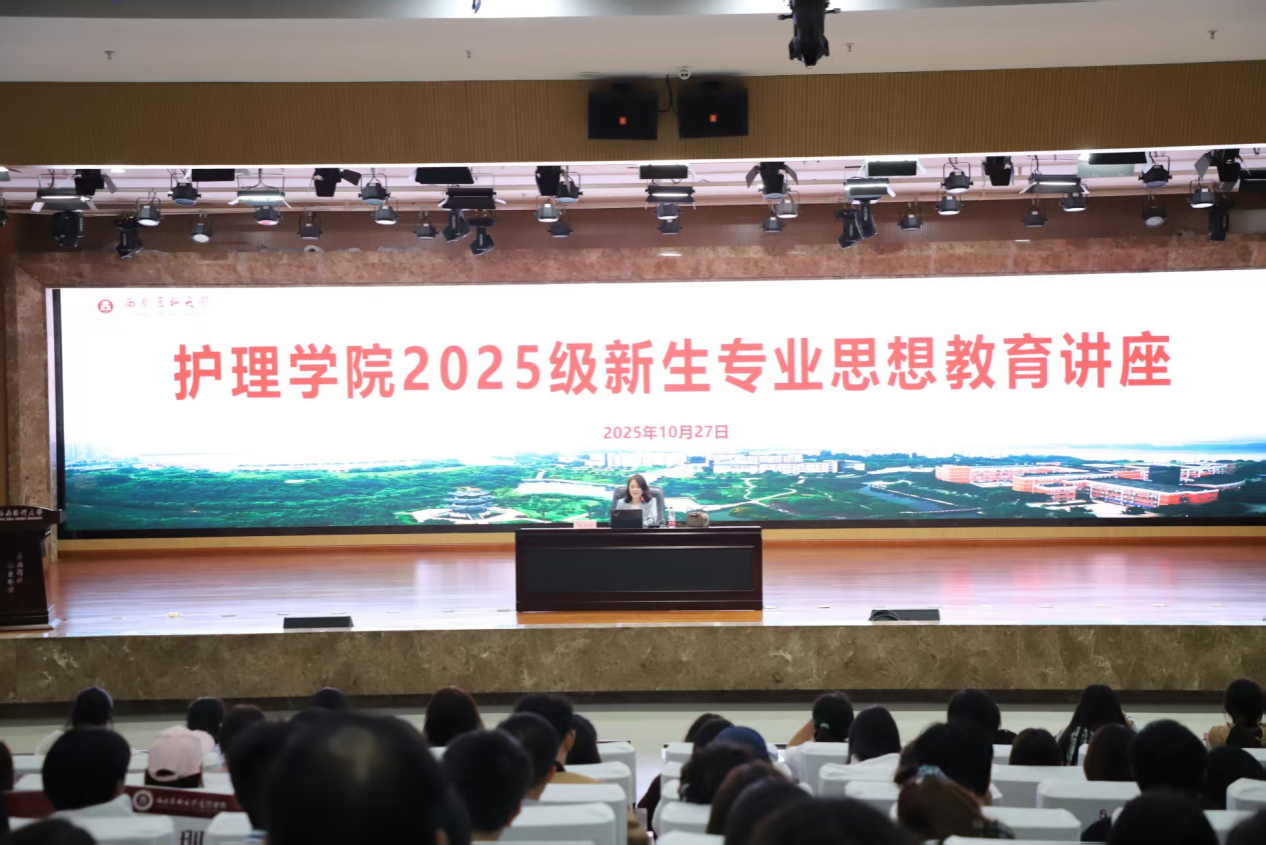 为进一步引导新生深化专业认识、夯实思想基础,以更加饱满的精神状态投入大学专业学习与个人成长,10月27日,护理学院在城北校区第一学术报告厅举行新生入学教育暨专业思想教育专题讲座。本次讲座邀请护理学院基础护理学教研室主任李雨昕副教授主讲,学生科辅导员及2025级全体新生共计400余人参加。讲座由护理学院2025级辅导员谢雨欣主持。