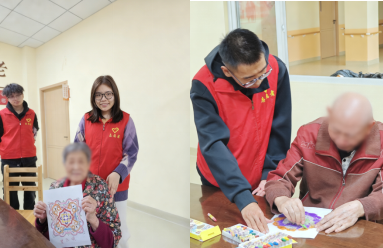 活动在温馨氛围中开启:曼陀罗绘画环节,志愿者一对一陪伴老人涂色,助其放松心情、表达情感,作品搭建起代际沟通桥梁;筷子接力游戏让老人分组协作传递筷子,锻炼手脑协调的同时增进信任;“金曲回荡”环节,志愿者与老人同唱《没有共产党就没有新中国》等经典老歌,现场满溢爱国情怀与节日温暖。