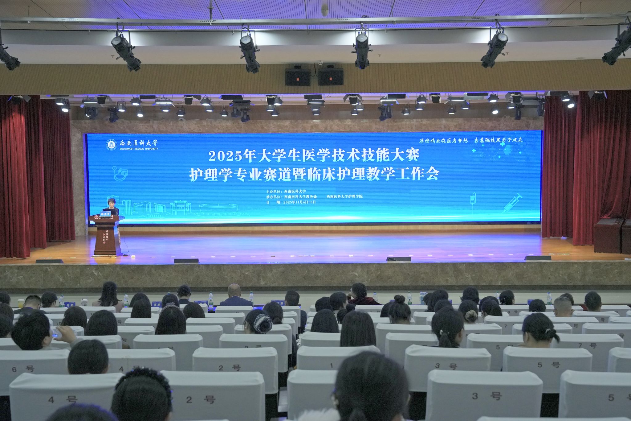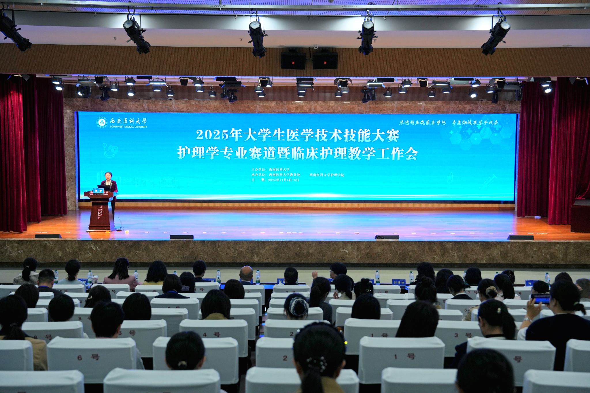 11月4日下午,西南医科大学护理学院在城北校区第一学术报告厅成功举办2025年临床护理教学工作会。护理学院全体班子成员,以及来自省内外25个教学医院的领队、指导教师100余人参加了本次教学工作会。会议由西南医科大学护理学院傅静教授主持。