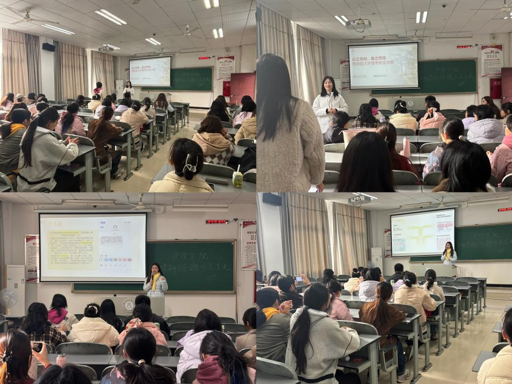 为切实助力2023级护理学专业本科生明晰考研方向、掌握科学备考策略,11月21日上午,护理学院在海川楼412教室举办考研经验分享会。活动特邀西南医科大学在读硕士研究生李攀、高斯妍为50名有志考研的本科学生送上了一场兼具专业性与实用性的备考“干货盛宴”。