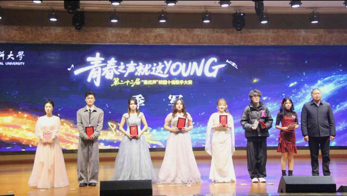 比赛现场“高手林立”,选手们或独自以通俗唱法诉说未来憧憬,或凭民族、美声唱法诠释改编经典,在经过多轮紧张且激烈的角逐之后,护理学院的李大微、李昊羲两位参赛选手凭借着自身出色的发挥脱颖而出。李大微选手选择了歌曲《陪你去流浪》进行演唱,在舞台上,他以深情且富有感染力的歌声,将歌曲中的情感展现得淋漓尽致;李昊羲选手则带来了《Forever Young》,其充满活力与激情的演绎,赢得了现场观众和评委的阵阵掌声。最终,李大微选手的精彩表现斩获了亚军的荣誉,李昊羲选手出色的演绎获得了季军的佳绩。奖项不仅是对选手实力的肯定,也见证了我院学生在艺术道路上的成长与突破。