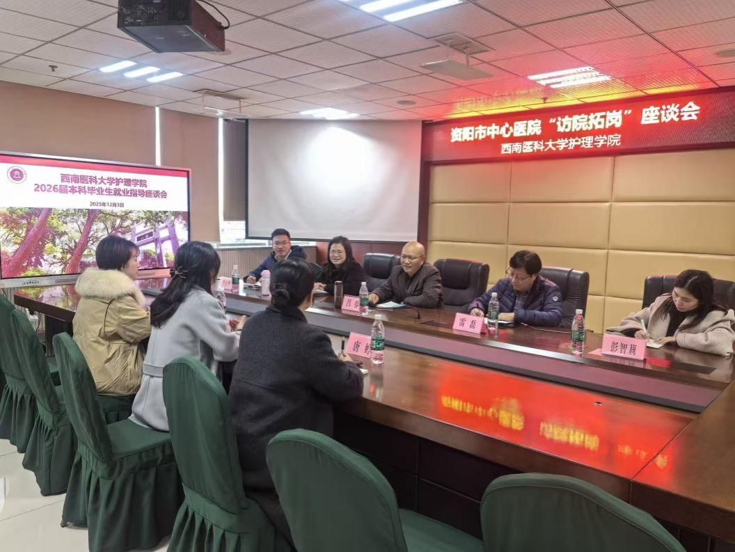 为贯彻落实国家稳就业政策,促进护理学专业毕业生高质量就业,12月3日至5日,护理学院专职组织员吕春、关工委副主任雷磊带队赴资阳市中心医院、绵阳市第三人民医院、绵阳市中心医院、绵阳四0四医院等实践教学基地,开展2026届毕业生“访院拓岗”促就业专项活动,进一步深化院校合作育人机制。