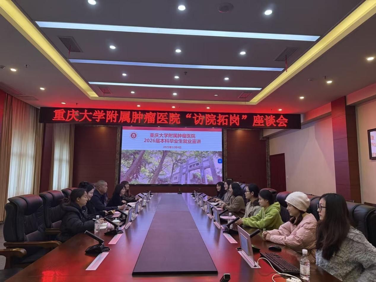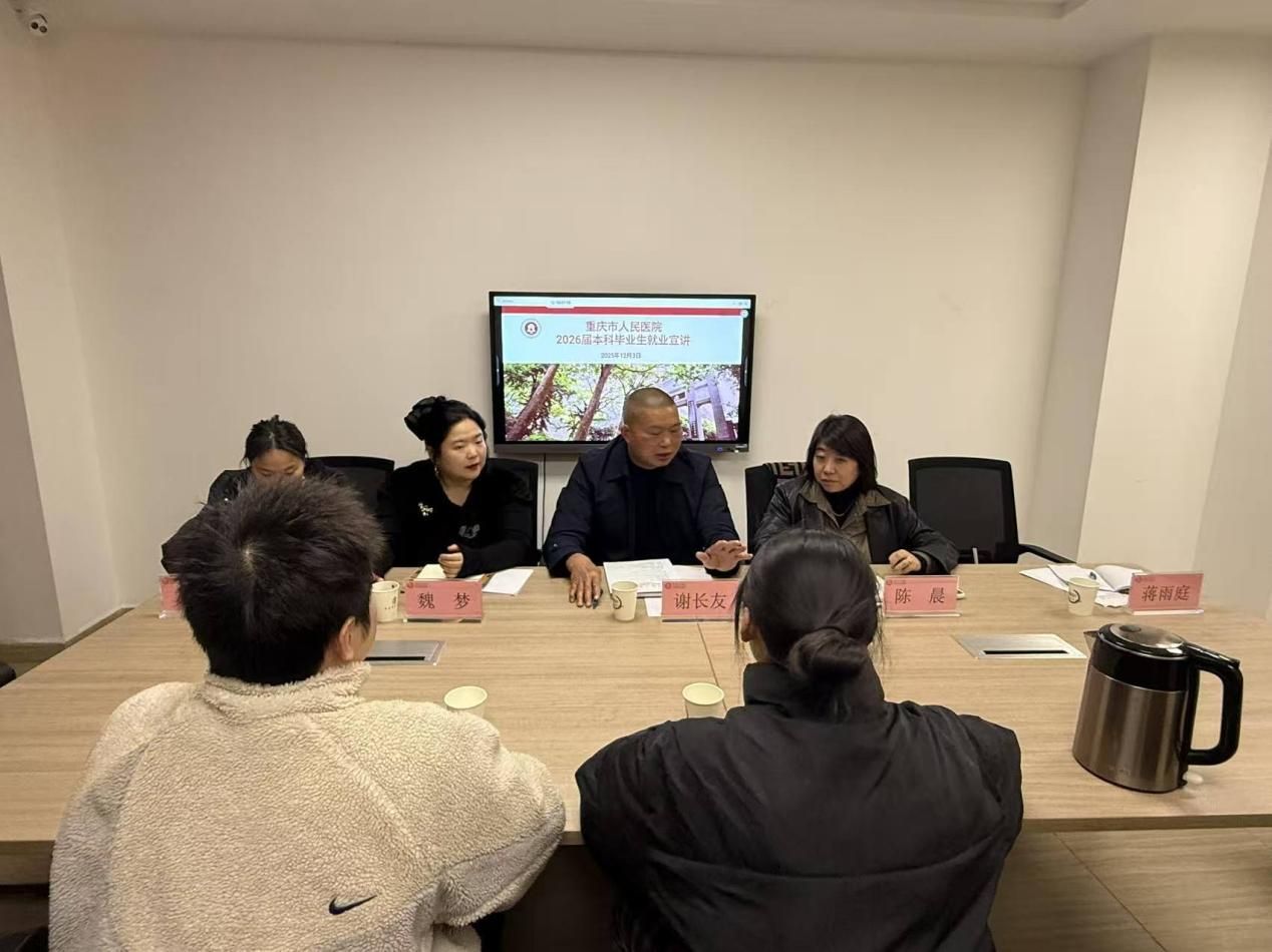 为进一步搭建学院与用人单位之间的沟通桥梁,强化交流合作,拓宽毕业生就业渠道、提升就业质量,12月3日至5日,护理学院副院长谢长友带队赴重庆市人民医院、重庆大学附属肿瘤医院和达州市中心医院开展就业宣讲活动。
