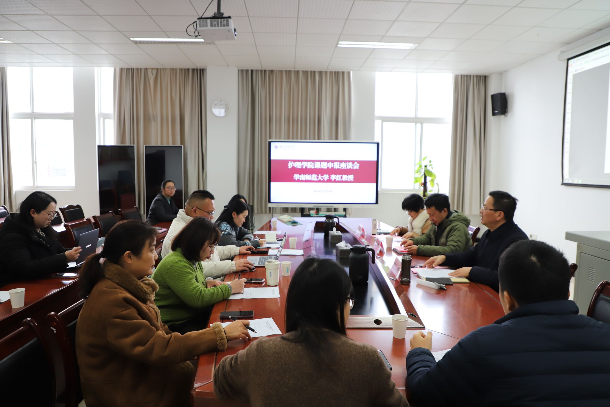 为切实提升学院教师国家级科研项目申报质量,2026年1月4日,护理学院特邀华南师范大学李红教授来院开展国家级项目申报一对一专题辅导。护理学学术骨干及心理学课程组教师共同参会。会议由护理学院党委书记刘文胜主持,院长陈燕华教授致欢迎辞。