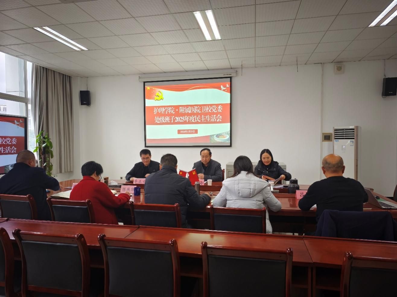 1月20日下午,护理学院·附属医院卫校党委在海川楼4楼会议室召开2025年度民主生活会。学校第五督导组到会指导并做点评。