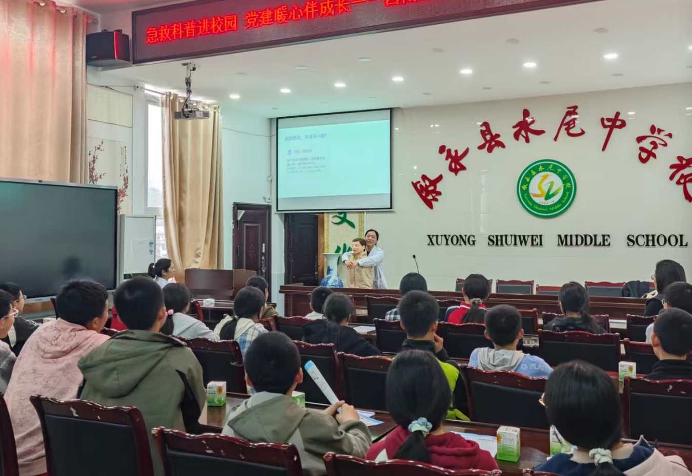 在叙永县水尾镇初级中学,健康知识宣讲活动有序开展。彭智莉老师与杨娅老师通过理论讲解与现场实操相结合的方式,生动演示了心肺复苏(CPR)及海姆立克急救法的关键步骤与操作要点,手把手指导学生进行模拟练习,有效提升了学生应对突发意外的自救互救能力,为校园安全增添了一道坚实屏障