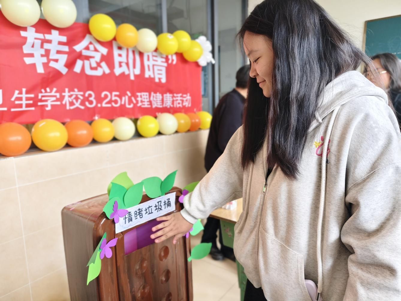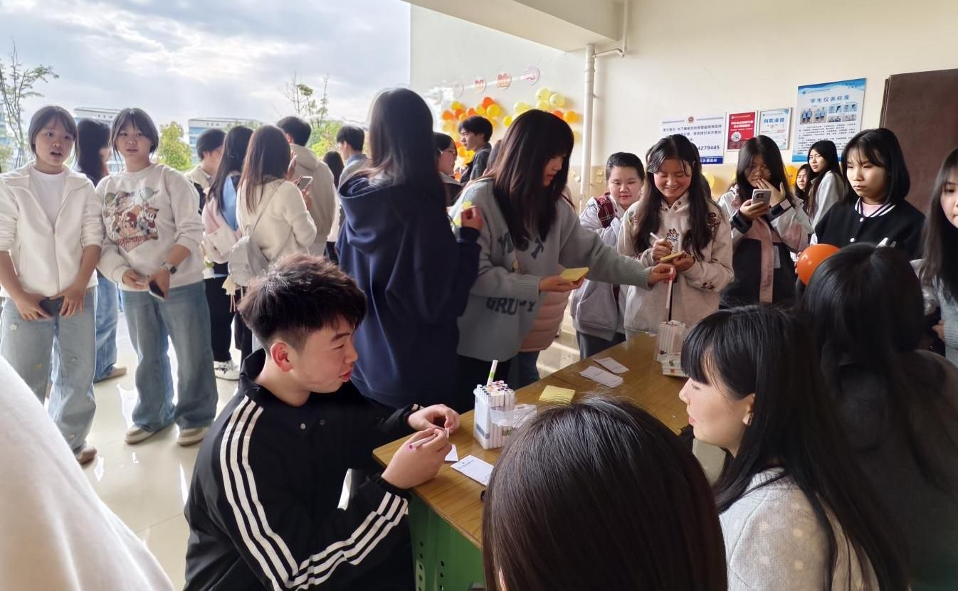 本次活动紧扣“善爱我”理念,引导学生关注自我情绪、学会转念思考。在“情绪垃圾桶”前,同学们将烦恼匿名投入箱中,学会主动放下负面情绪,完成与自己内心的和解。“好事分享墙”引导大家回望生活中的温暖瞬间,在分享中将目光从困境转向光亮,体验“转念”带来的积极变化。在“能量加油站”中,同学们随机抽取心理小贴士卡片并领取棒棒糖,进一步强化大家关爱自我的意识。