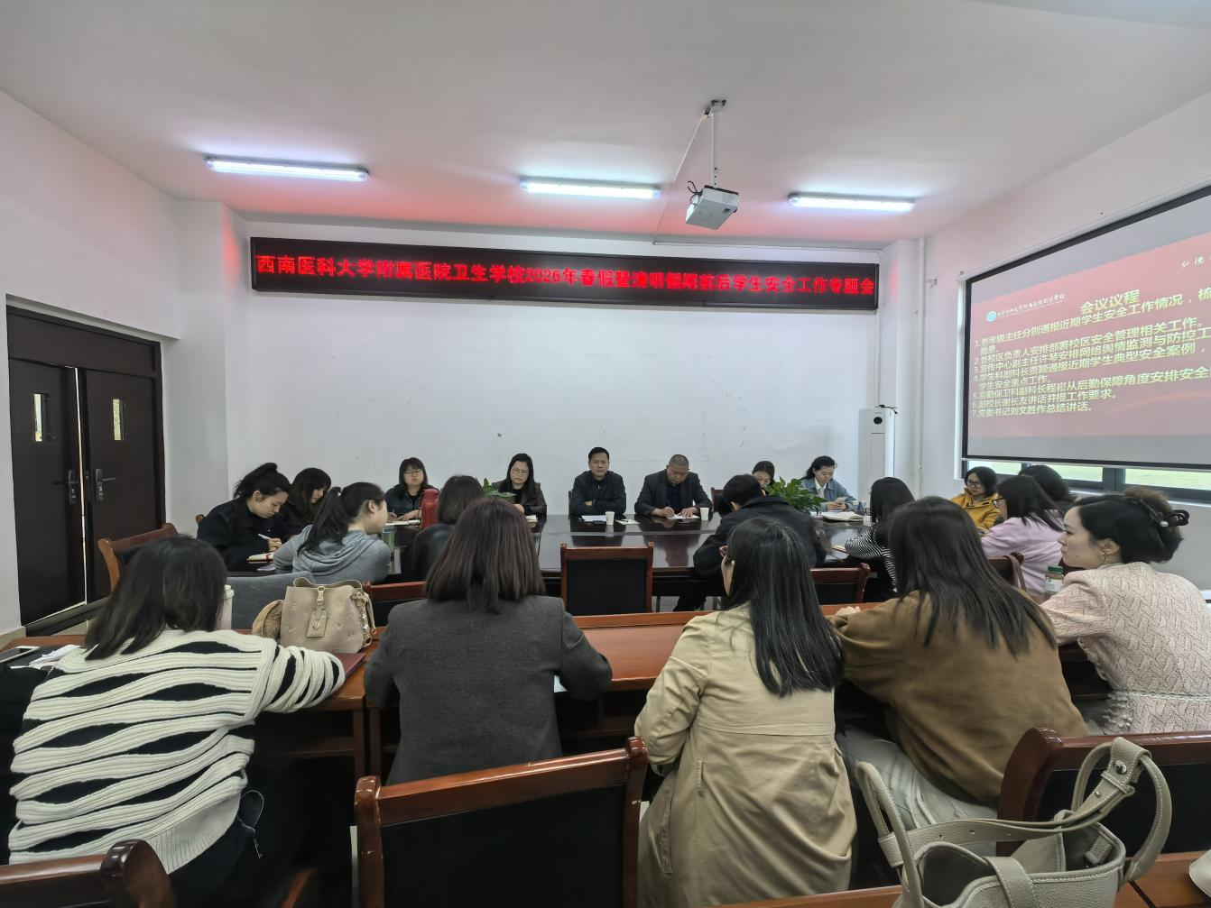 4月2日上午,学校在纳溪校区致远楼110会议室召开学生安全工作专题会议,全面总结近期学生管理工作,分析当前安全形势,并对春假、清明假期及下一阶段学生安全工作进行安排部署。党委书记刘文胜、副校长谢长友出席会议,会议由学生科副科长贾颖主持,全体学工人员参会。